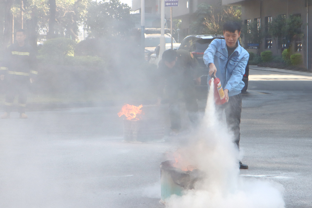 最受期待的实操教学环节中,消防员现场示范了灭火器“提、拔、握、压”核心操作流程与消防栓使用规范,强调“站在上风方向、对准火苗根部喷射”等关键要点。随后,邀请企业员工亲身实践,并耐心指导,确保每位参与者都能熟练掌握应急装备使用技能,真正把“纸上知识”转化为实战能力。